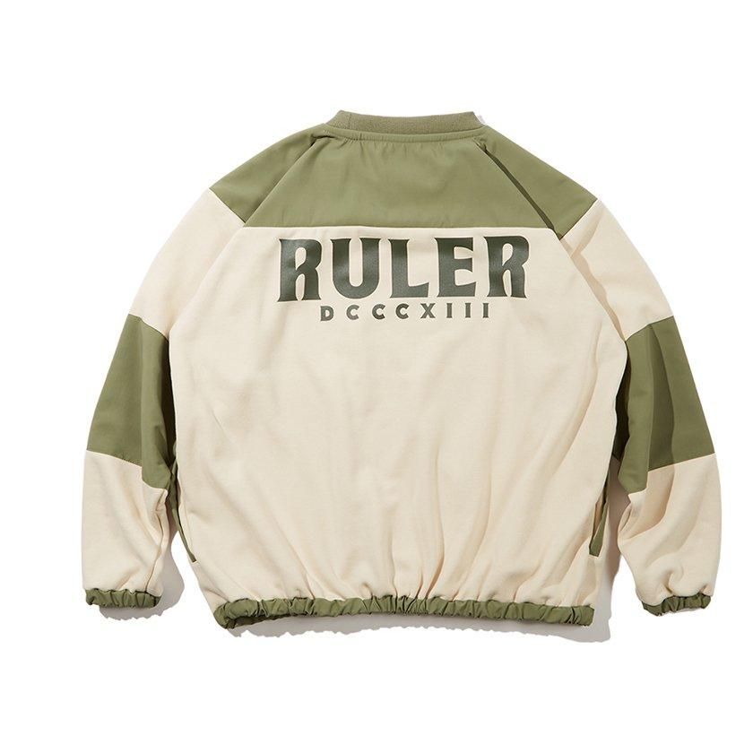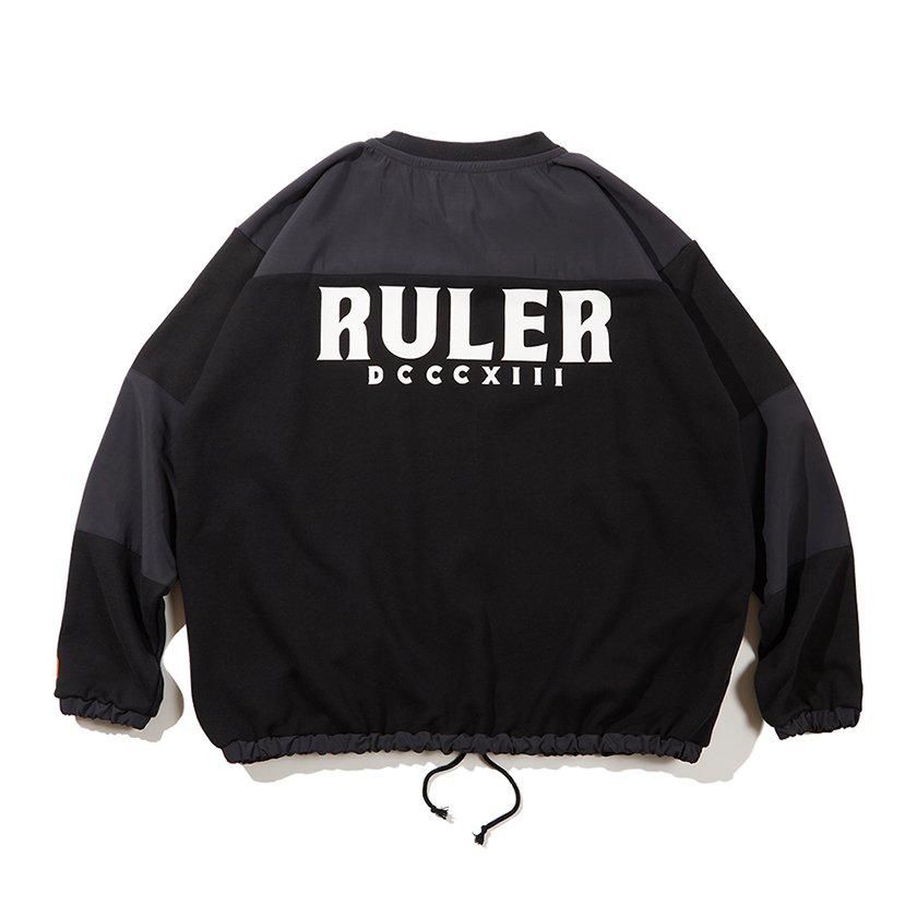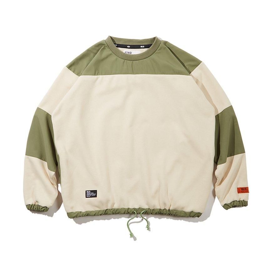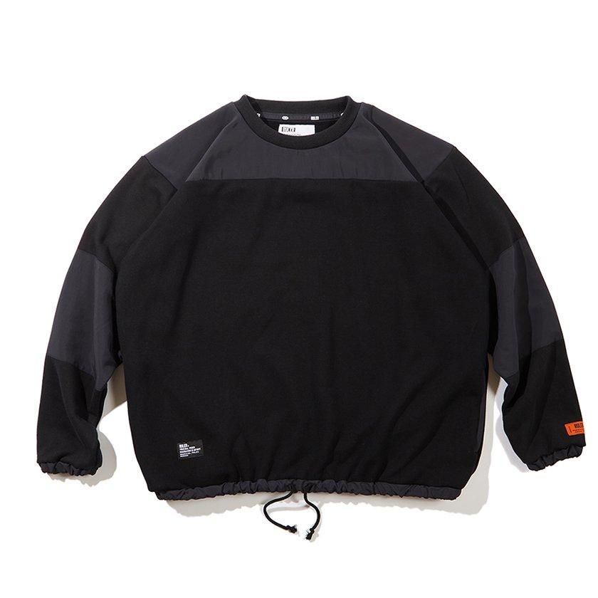 肉厚な30/7度詰裏毛生地にナイロンタッサー生地をアクセントに使用し作製したプルオーバーL/S。バックにシルクスクリーンプリントでアートワークを配置。サイドポケット有り。裾は紐で調整可。