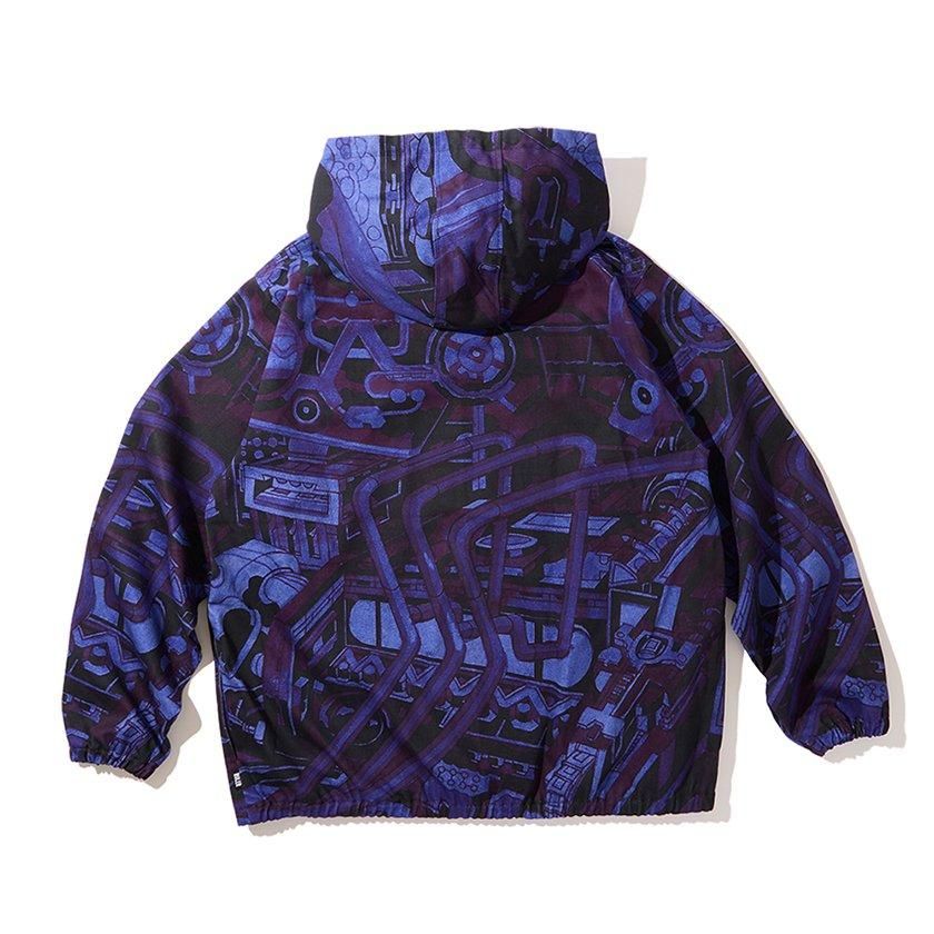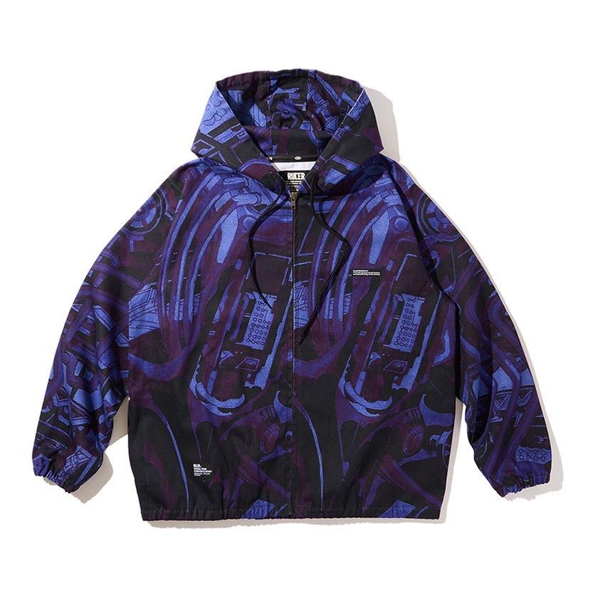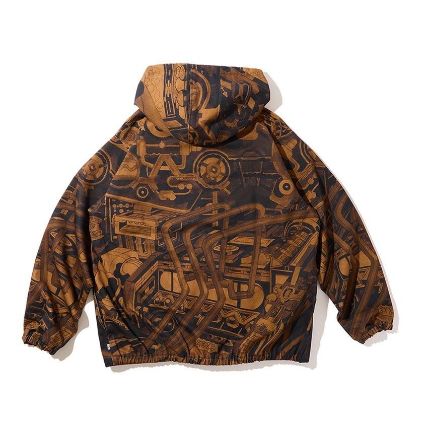 コットンドリル生地にオリジナルテキスタイル加工をし作製したオリジナルフーディージャケット。