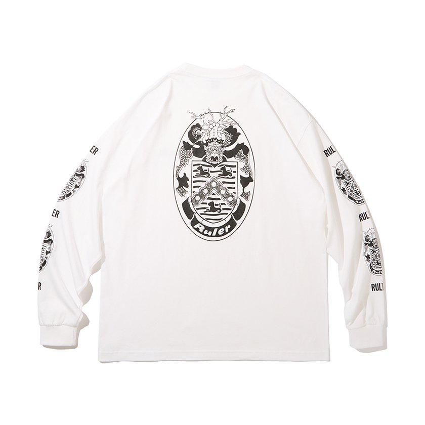 7オンス・オープンエンド糸で織られたロングスリーヴTシャツ。左胸にATTDタグ, アーム・バックにシルクスクリーンプリントでアートワークを配置。