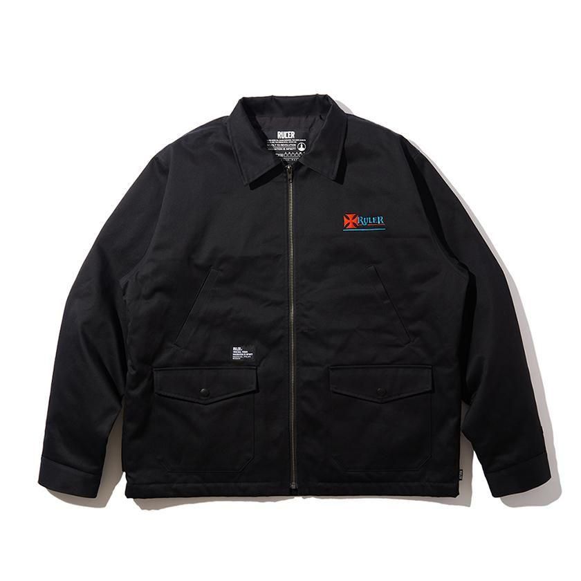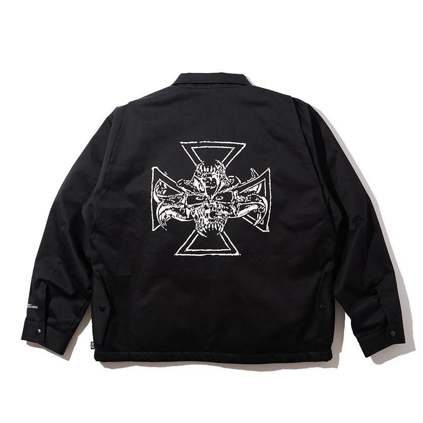 高密度ウェポン・ツイル生地を使用し作製した6ポケットハンタージャケット。フロントにI.D.タグと左胸に刺繍, バックにシルクスクリーンでアートワークを配置。内側:オリジナルダイアキルティング。